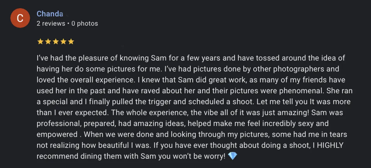 to photograph 75 Women in 2025! You read that right! Be one of the ONLY 75 Women who will see themselves through Sam's Lens.